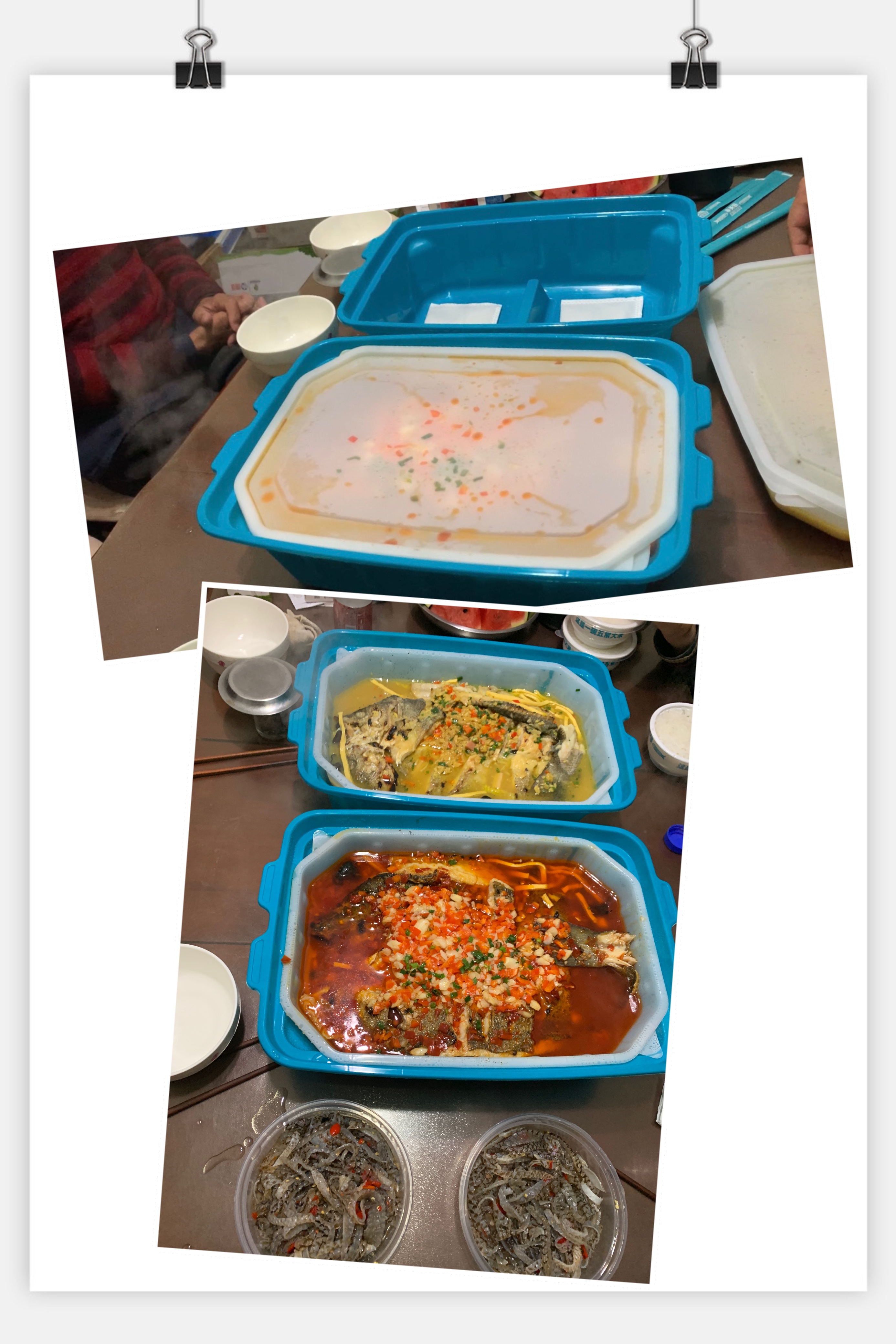 Another family gathering day. My brother and Linlin carried out two different flavored baked fish from a restaurant. The packing was so good. It had two packs of things that by pouring water on them, they release heat and boiled water. we had good talks during our time together.