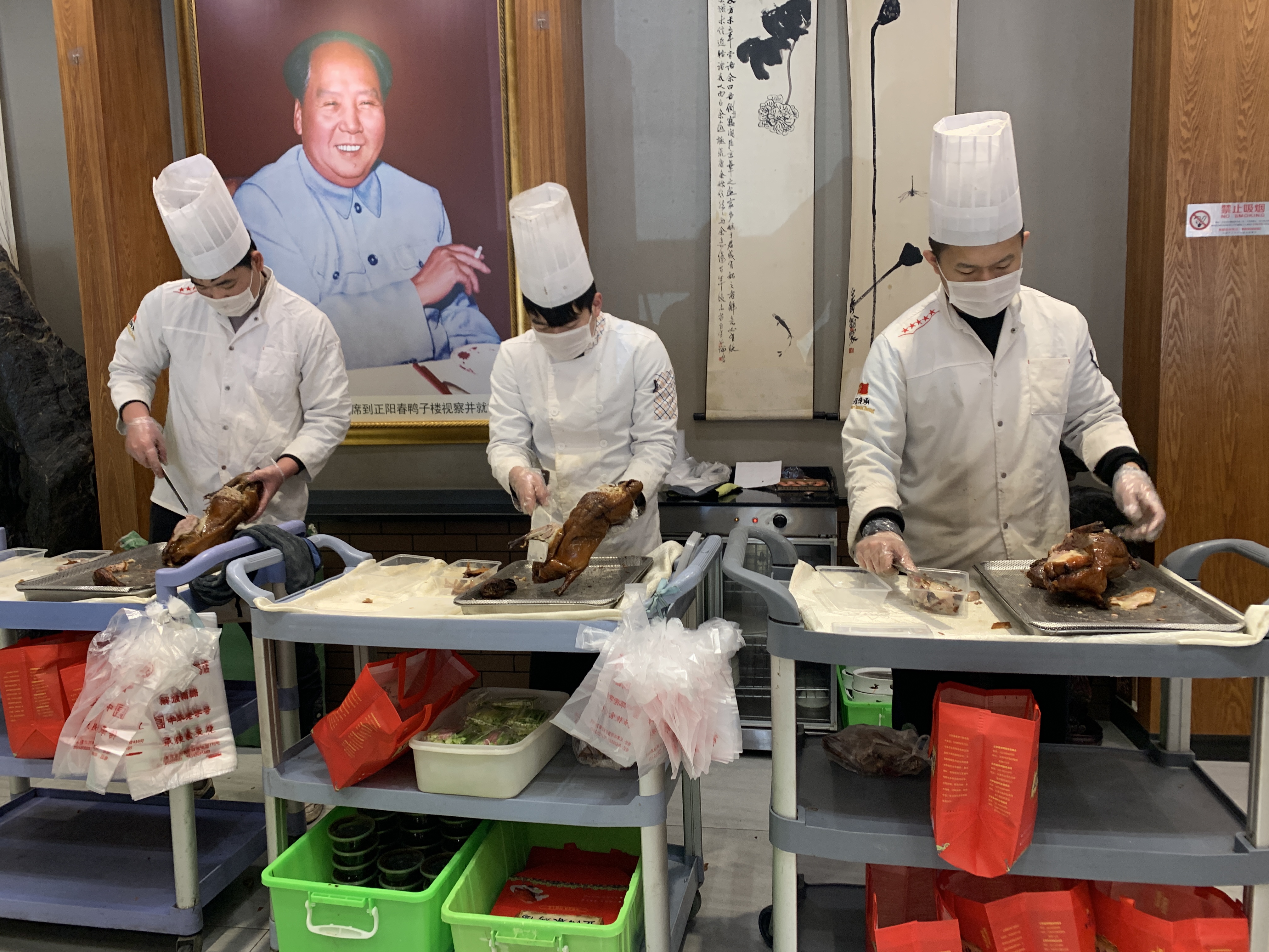 Chefs are cutting the ducks.
