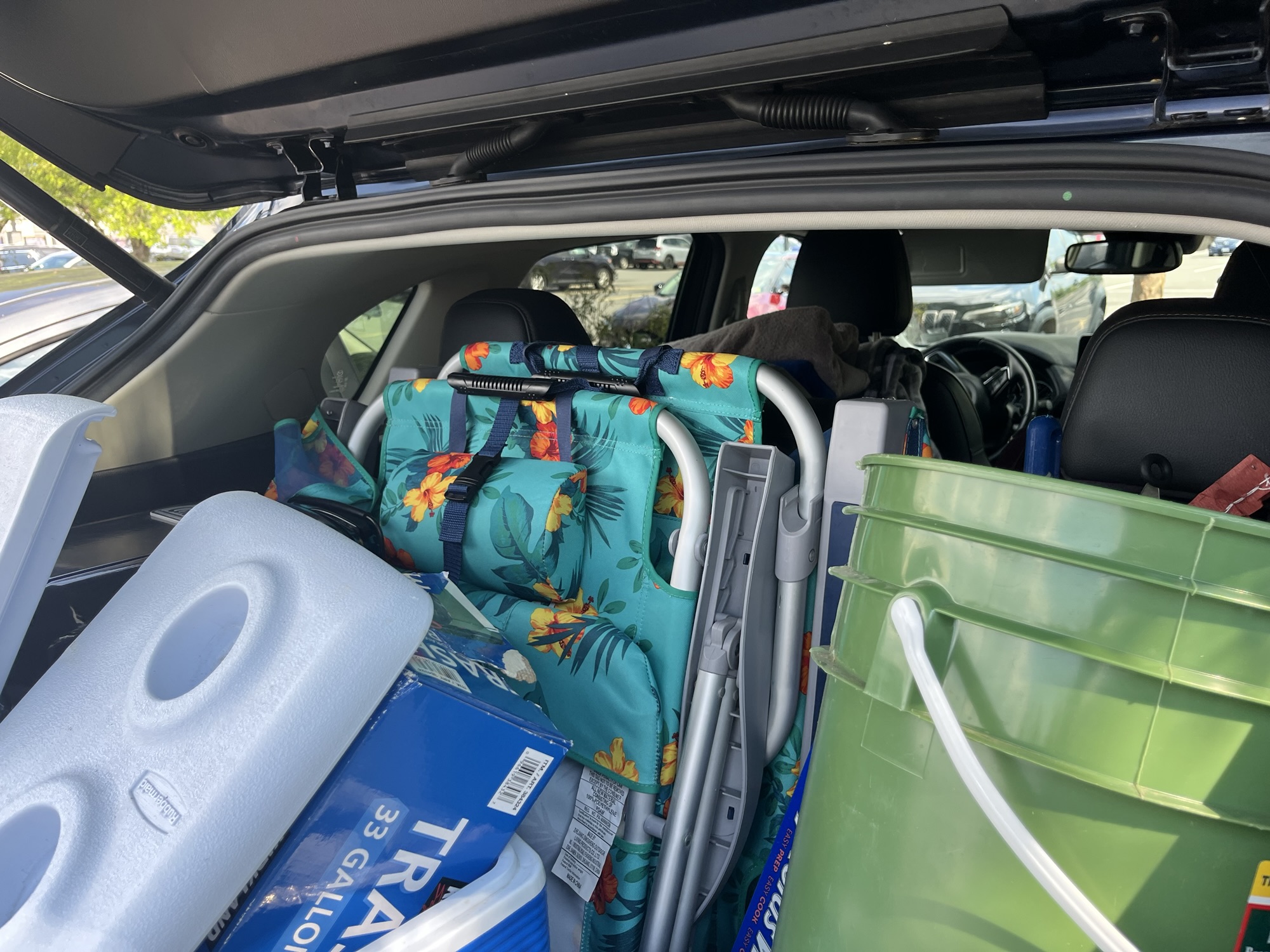 虽然两晚,要带的东西好多啊,一辆车塞得满满的。