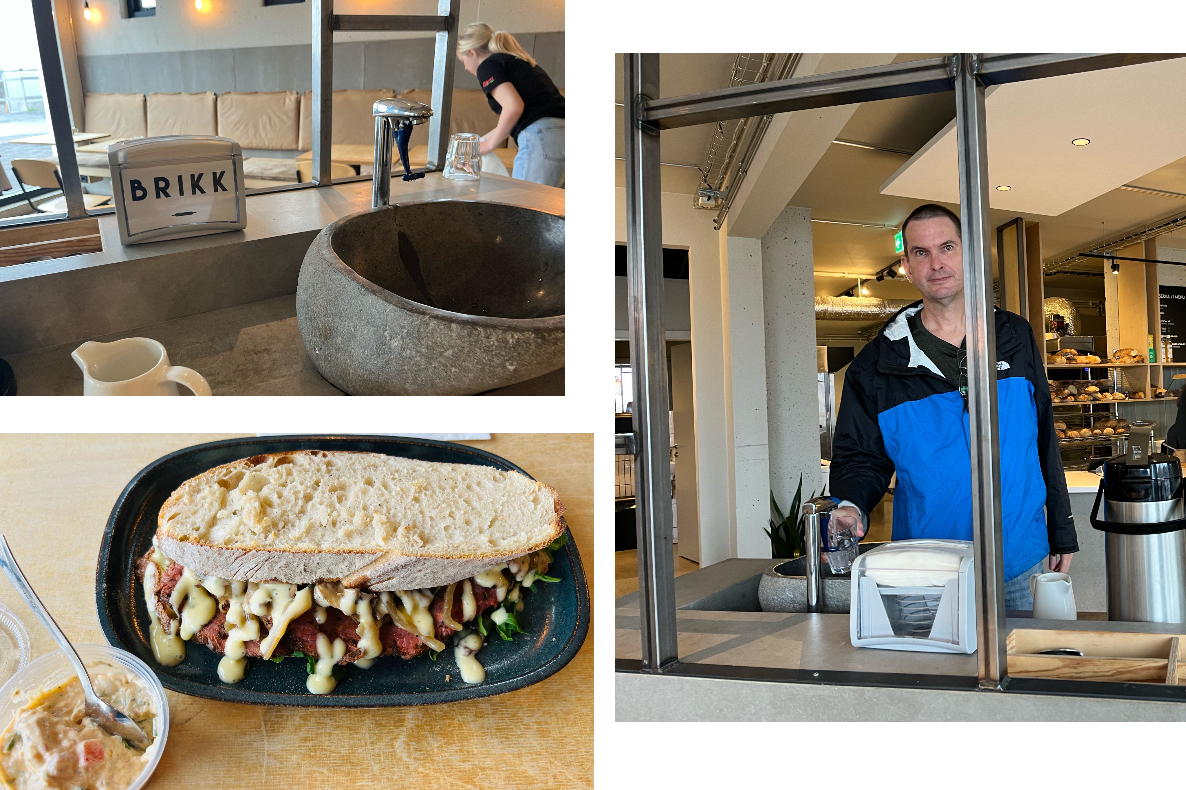 第一站雷克维克,拿了车已经快中午了,很快买个牛肉三明治。看到小水池,我很快洗了个手,拿两张餐巾纸。过会儿老艾过来说,你知道那是饮用水吗?是听说冰岛水龙头的水就很好喝,是觉得那个开关很不一样,呵呵,但我从来没见过水池不用来洗手啊😲