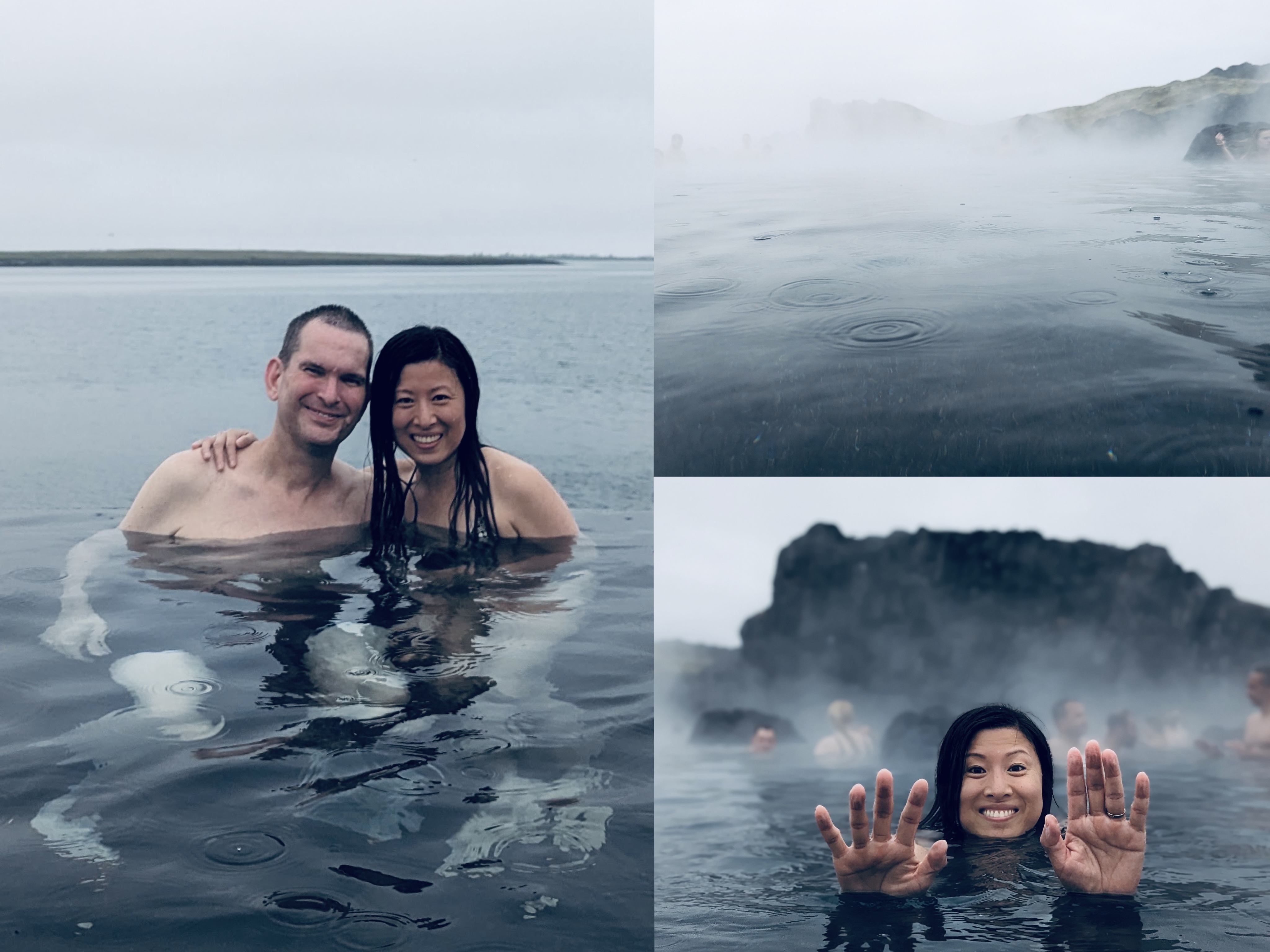 We went to Sky lagoon for two hours. Nothing better than relaxing in hot spring in a 55 degree rainy day. We bought a package including a seven-step ritual. Well, Erik realized right away we started with the third step already when we were going into the hot sauna. I guess the first one was the lagoon and the second one was the cold water pool that not many went. Oh well. The 4th one is a cold water mist where we were for less than 10 seconds. Then we were told to put a little plate of salt on our body which was the 5th step. The 6th step was steam sauna. Erik opened the door and he said his eyes got all foggy and left right away. You couldn’t see anything there, but steam. I already felt like it was a ripoff, so I was going to stay for the value! And stay for Erik’s as well! Last step was a shower. For more than $20, Erik got salt all over his body and took two showers! 😂