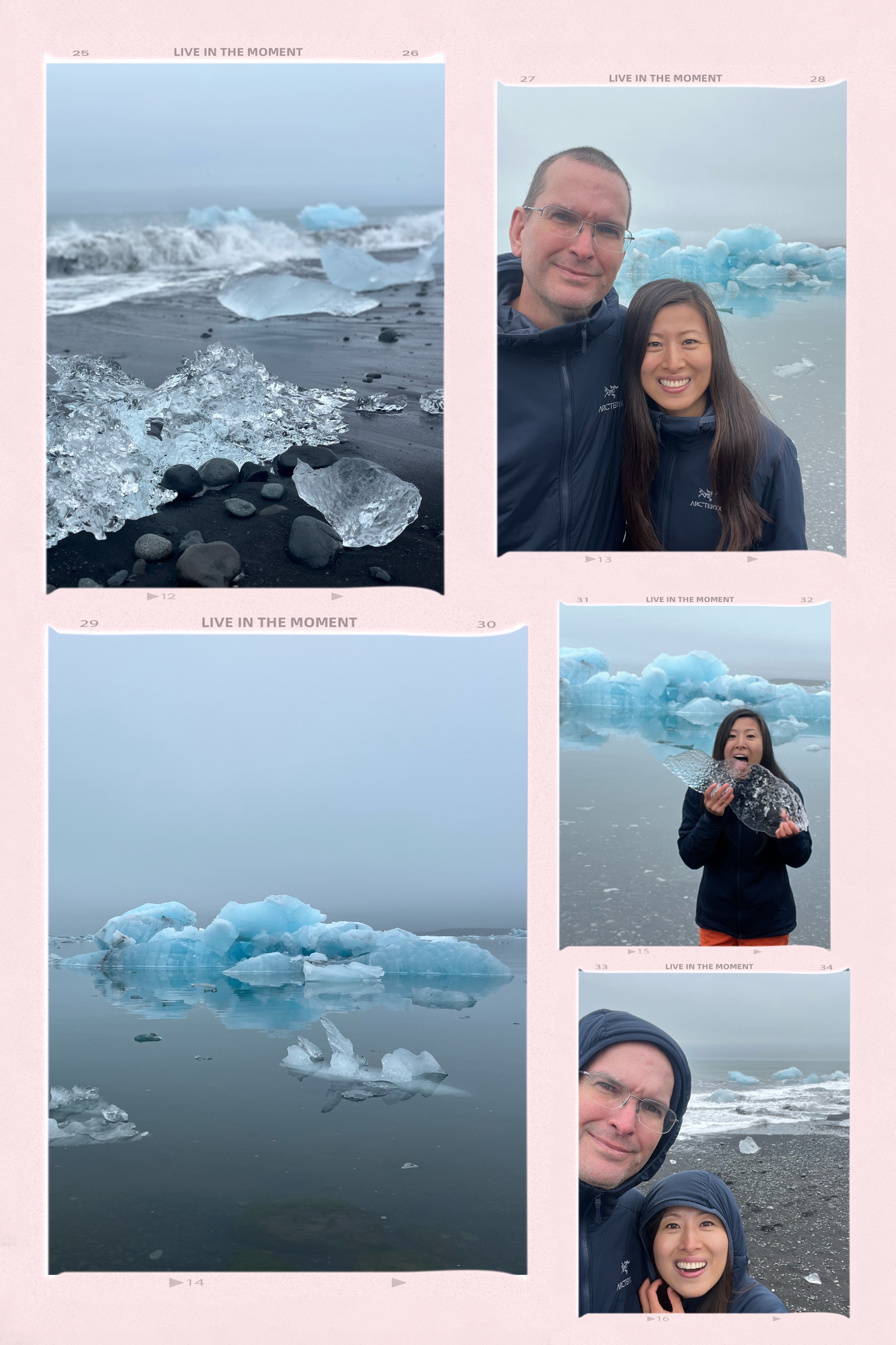 We arrived at the iceberg lagoon again this morning to get on our boat tour. I went on the hill next to the lagoon which I didn’t go yesterday, and well, it is a lagoon that I can see the end of it. How far can a boat go? I was a little disappointed. But, I kept my mind open..hehe.. you know what? When you are open, things normally turn out to be really awesome, like this zodiac boat tour! We had so much fun. We got so close to the icebergs, even though the captain wouldn’t go through them as I hoped. He thinks they are dangerous as they tip over all the time. We also went closer to the glaciers. I hoped I could touch them, but that didn’t happen either. The stunning view did make it all up for me. Our captain was very knowledgeable about the glaciers and icebergs and shared lot of information about them. The speed of the boat excited me as well, especially on a lagoon full of icebergs. I am so glad we did it. It is just so different to be among them vs being far away and looking at them. Love the experience! I need a hat next time. 😛