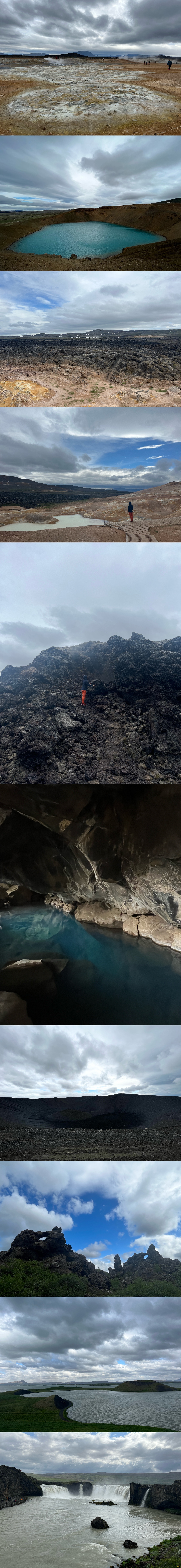 - Hverir Geothermal Area; 2. Krafla; 3-5. Leirhnjukur area (This wasn’t in the plan, but we saw many cars there,so we turned around and checked it out. Loved the hike. It was my favorite of the day!); 6. Grjotagja Cave (It was used as a location for filming the fifth episode of the third season of *Game of Thrones); 7.*Hverfjall crater; 8. Dimmuborgir lava field; 9. Skutustadagigar (pseudocraters); 10. Goðafoss waterfall.