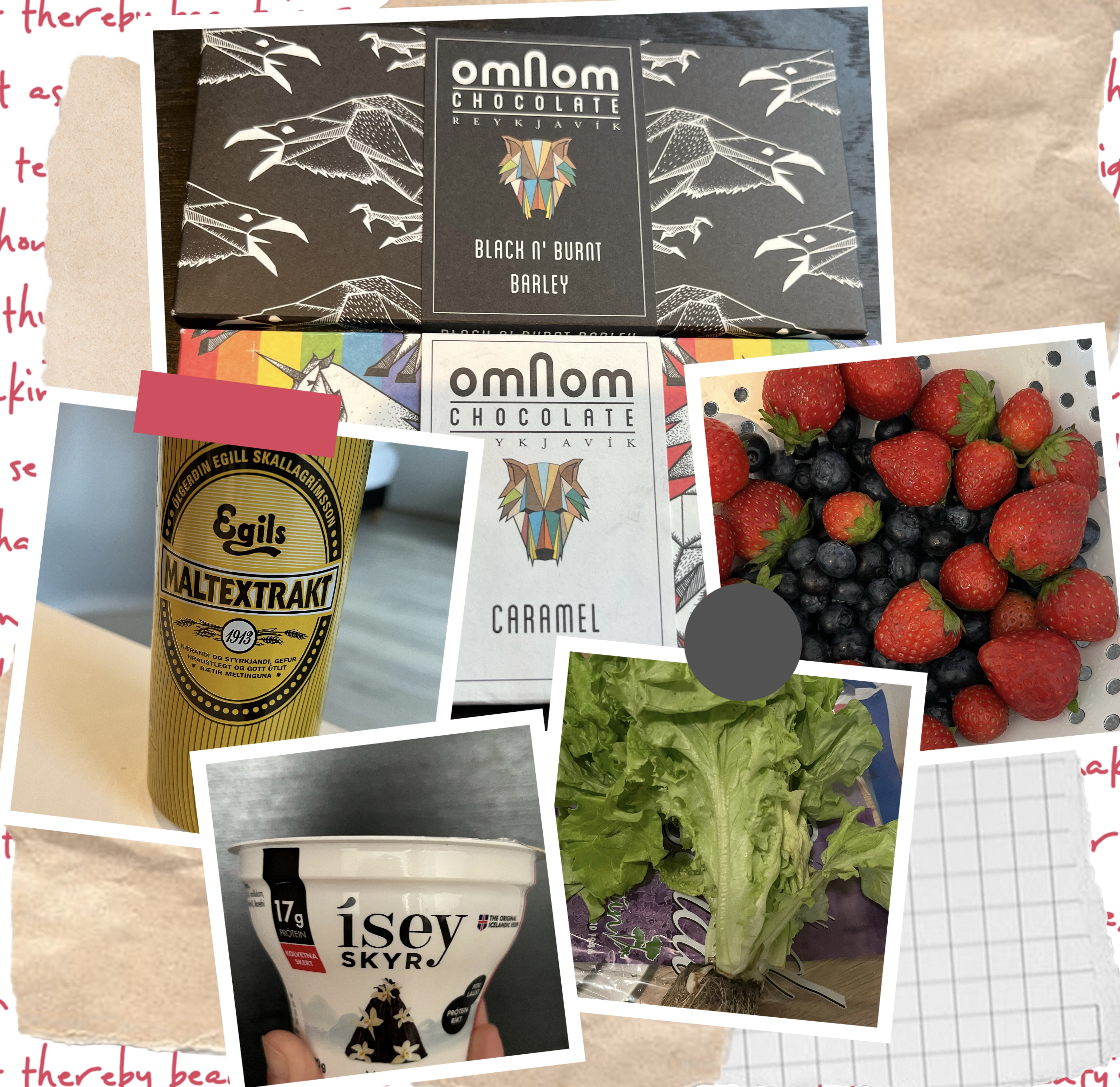 但是冰岛的蓝莓太好吃了,就像农场刚摘的。还有草莓,但不是美国能见到的牌子的,忘了拍照,那个草莓太好吃了,我后来就天天买,和小时候在国内吃的一样,有点儿像12月回国吃的奶油草莓。生菜小黄瓜也好吃,很新鲜。