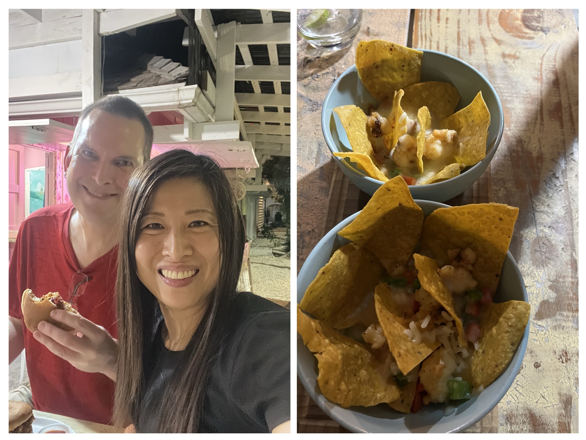 We didn’t go to the tourist street, but we went to a local Conch and Coconut Shack that Erik found. And we had to take a dark back road that Erik found to get there. Very Erik style. We ordered our first conch salad, which didn’t make it to the picture, coconut conch burger and nachos with lobsters. The conch salad was so so. The burger tasted interesting. The nacho was the most interesting because it didn’t use nacho cheese but mozzarella cheese and it was served in a super hot bowl fresh from the oven. The experience was good as we had a chatty waitress who stopped by and talked to us all the time. ☺️ We dined out, got our valentines picture and it was a GOOD Valentine’s Day! What else is there, Erik?